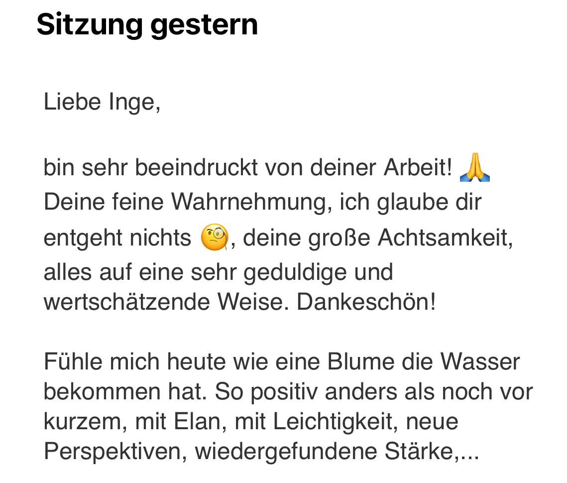 Viele Klientinnen berichten, dass bereits ein einziger Termin deutliche Klärung und Entlastung bringt.
