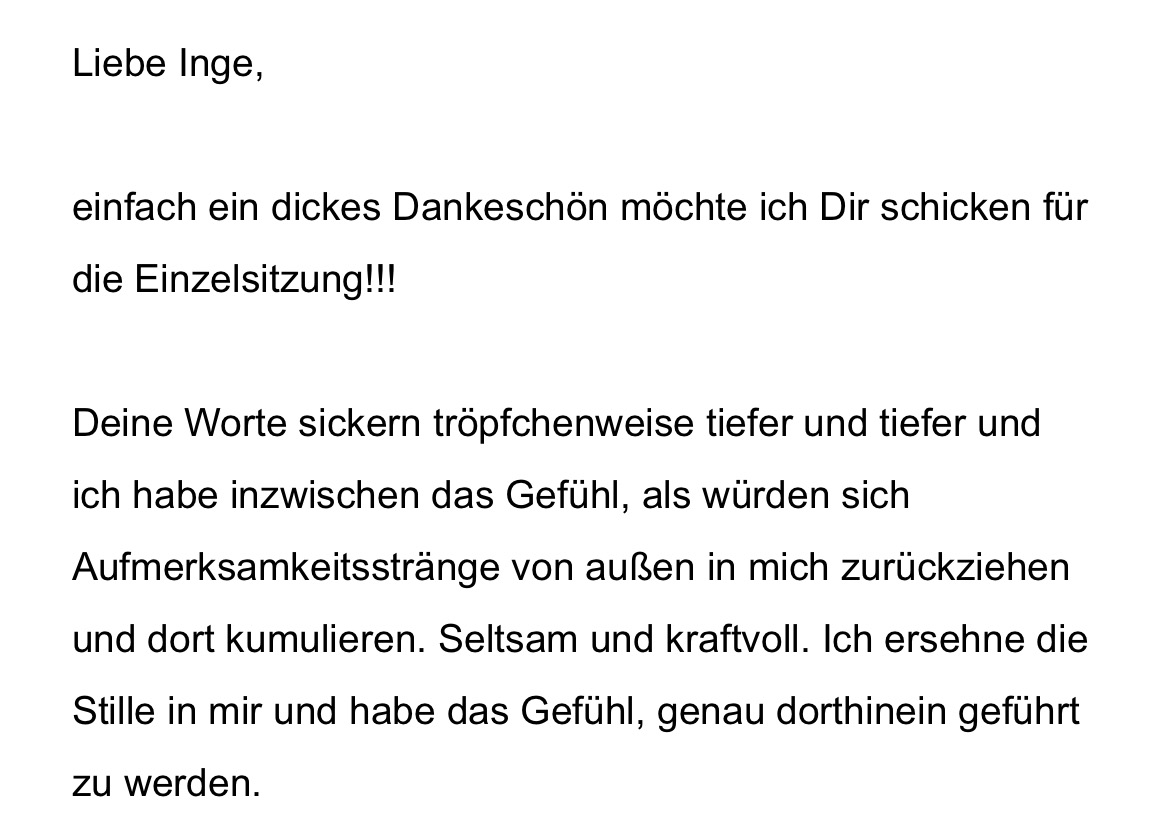 Oft wirkt eine Sitzung noch Tage oder Wochen nach und bringt neue Perspektiven, Ruhe und Orientierung.