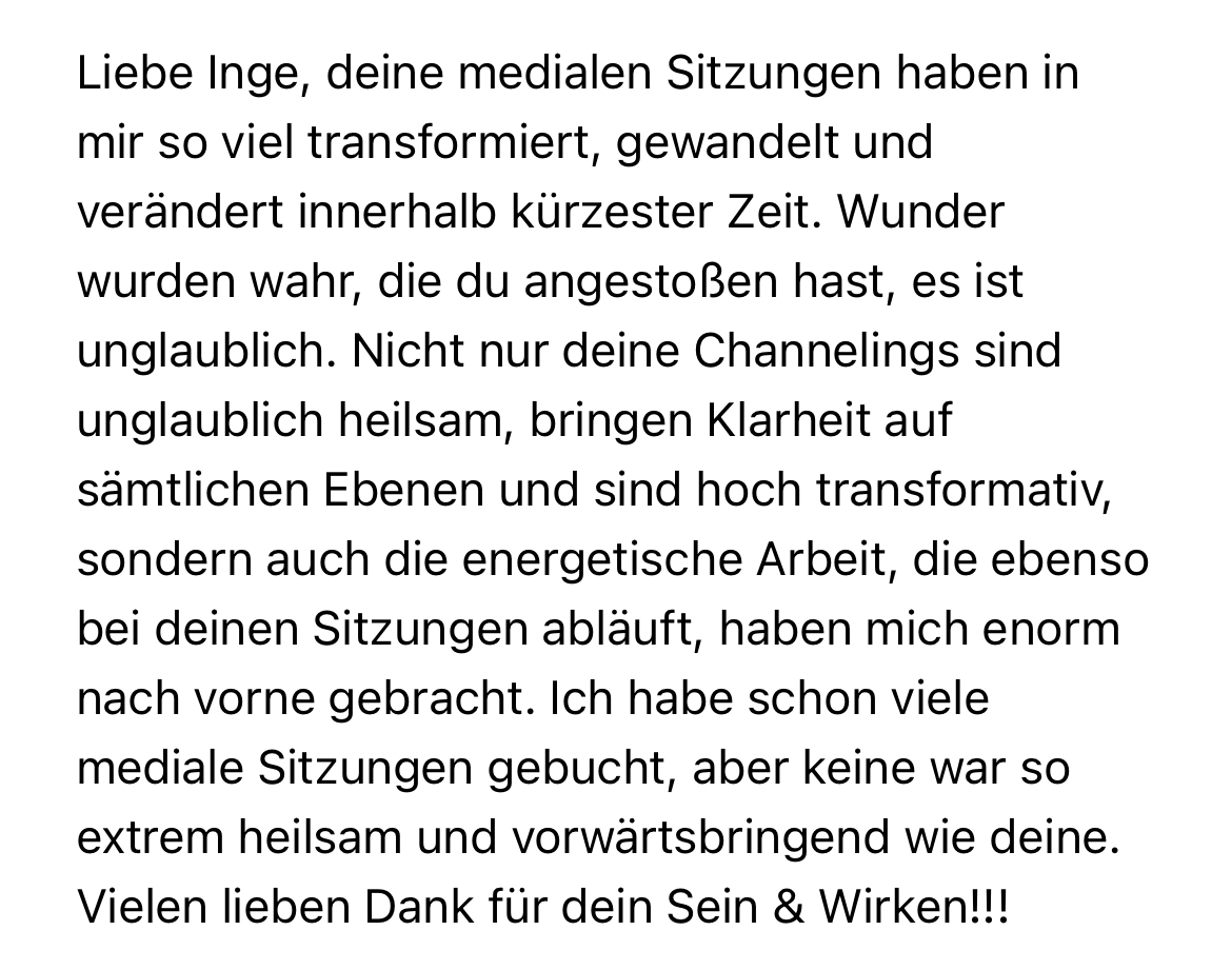 Diese Verbindung aus Medialität und fundiertem Hintergrund ermöglicht eine klare, strukturierte und gleichzeitig sehr feine Arbeit.